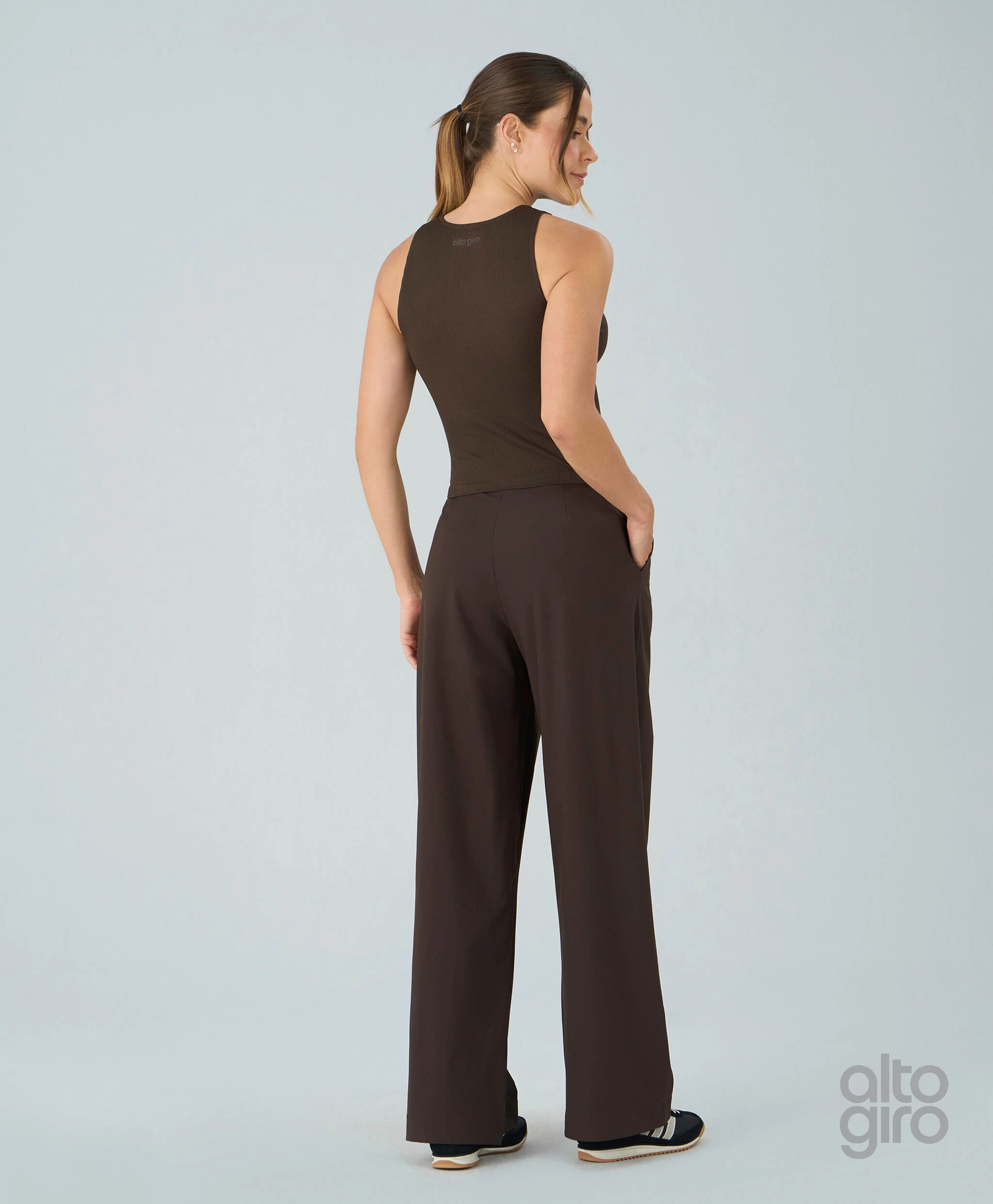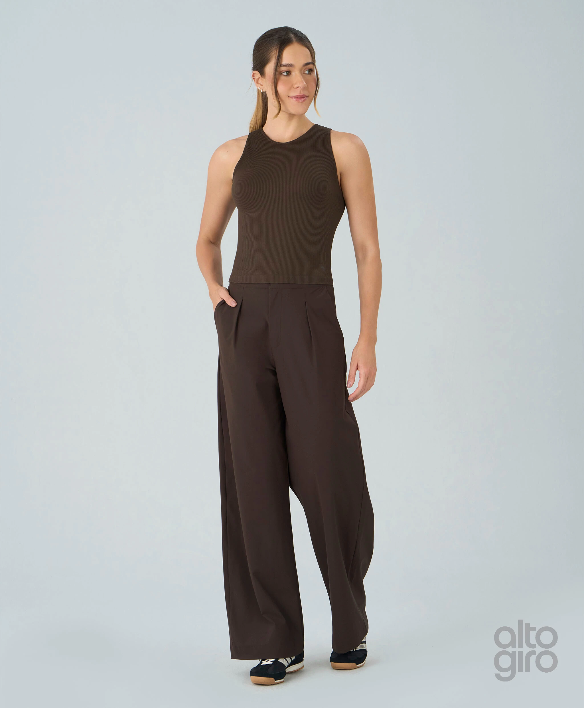 Calça Alto Giro com modelagem reta e caimento solto, combinando conforto e sofisticação. Possui pregas frontais, pences nas costas e dois bolsos laterais funcionais, além de personalização discreta com logo Alto Giro. Confeccionada em poliamida com elastano, oferece toque macio, respirabilidade e liberdade de movimentos.